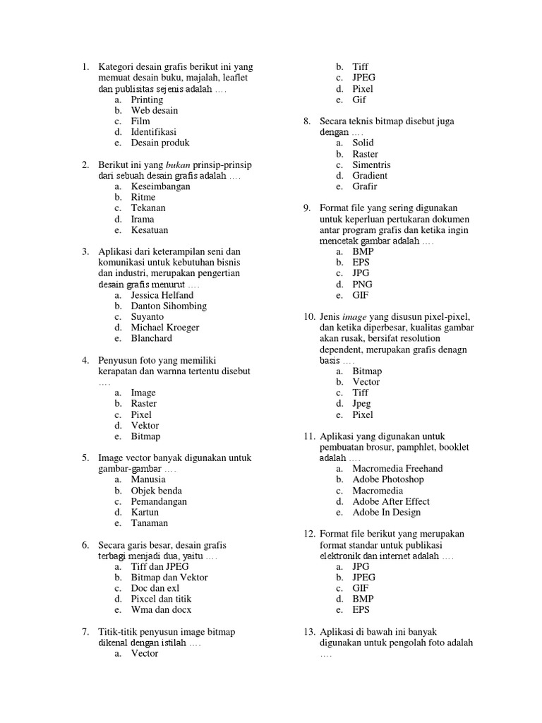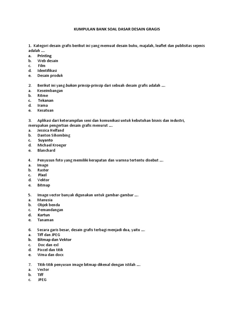 Soal desain grafis kelas x tkj beserta jawabanya 1.